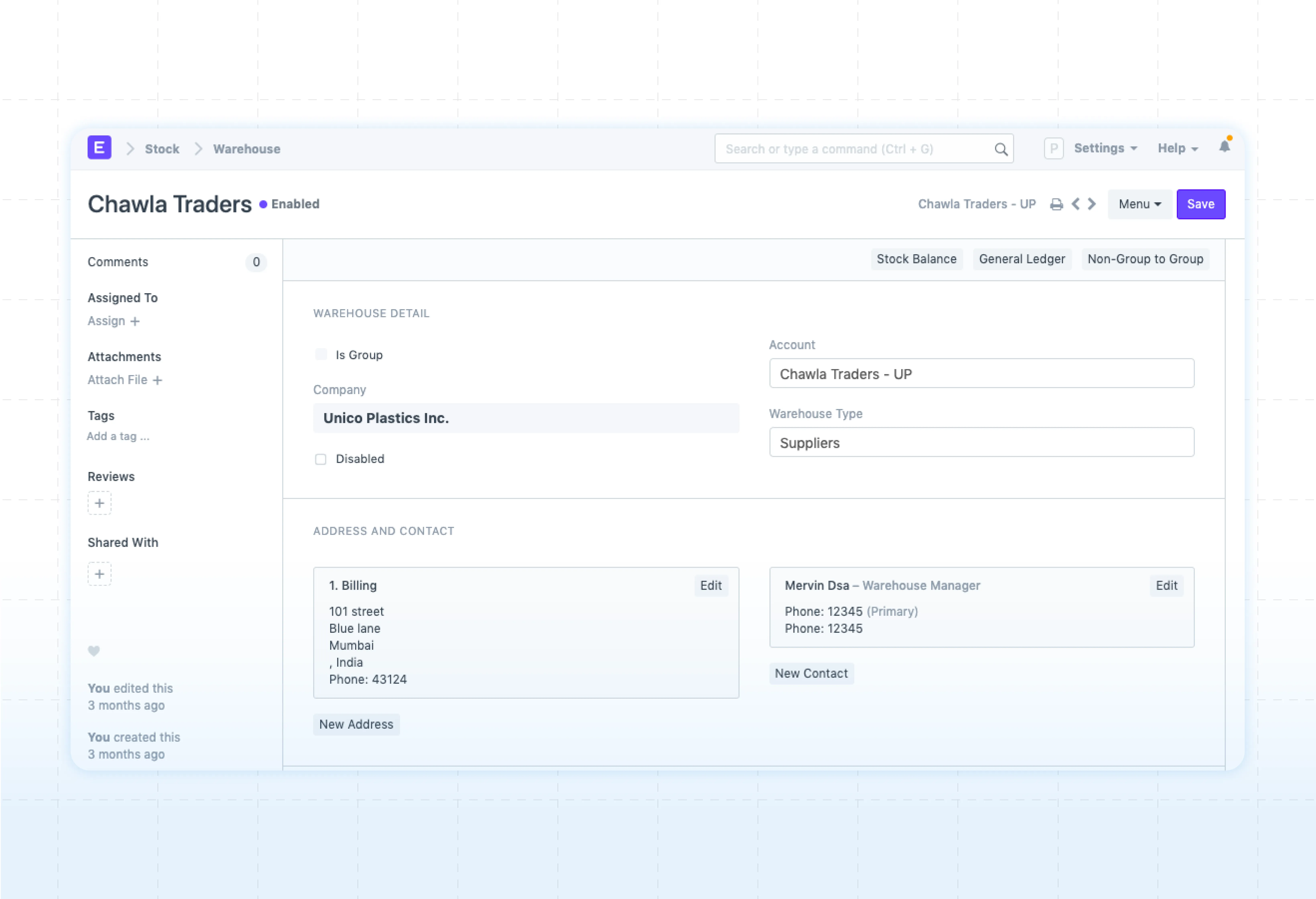Instantly get stock balance in any warehouse for a specific date with ERPNext inventory dashboard. Make better decisions when fulfilling wholesale orders by knowing which warehouse has how much stock and its value—all with just a few clicks.