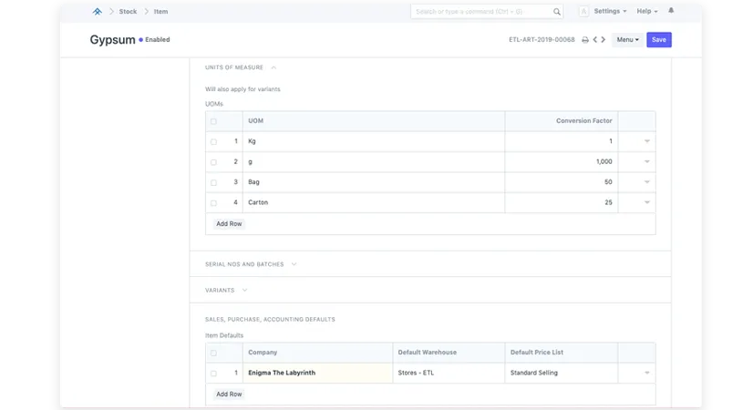 Track serial, batch, and variant data by UOM.