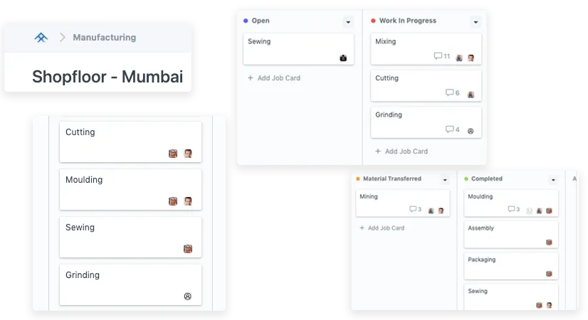 Track job cards and operation-level progress.