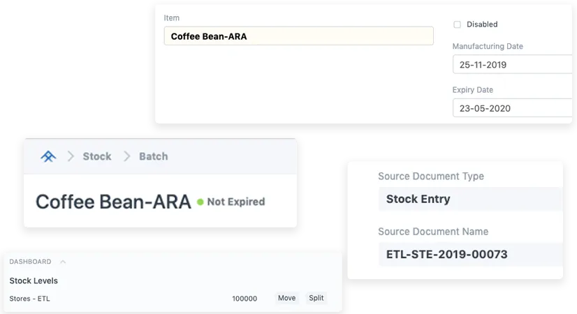 Real-time batch, serial, and stock tracking for precise inventory control.