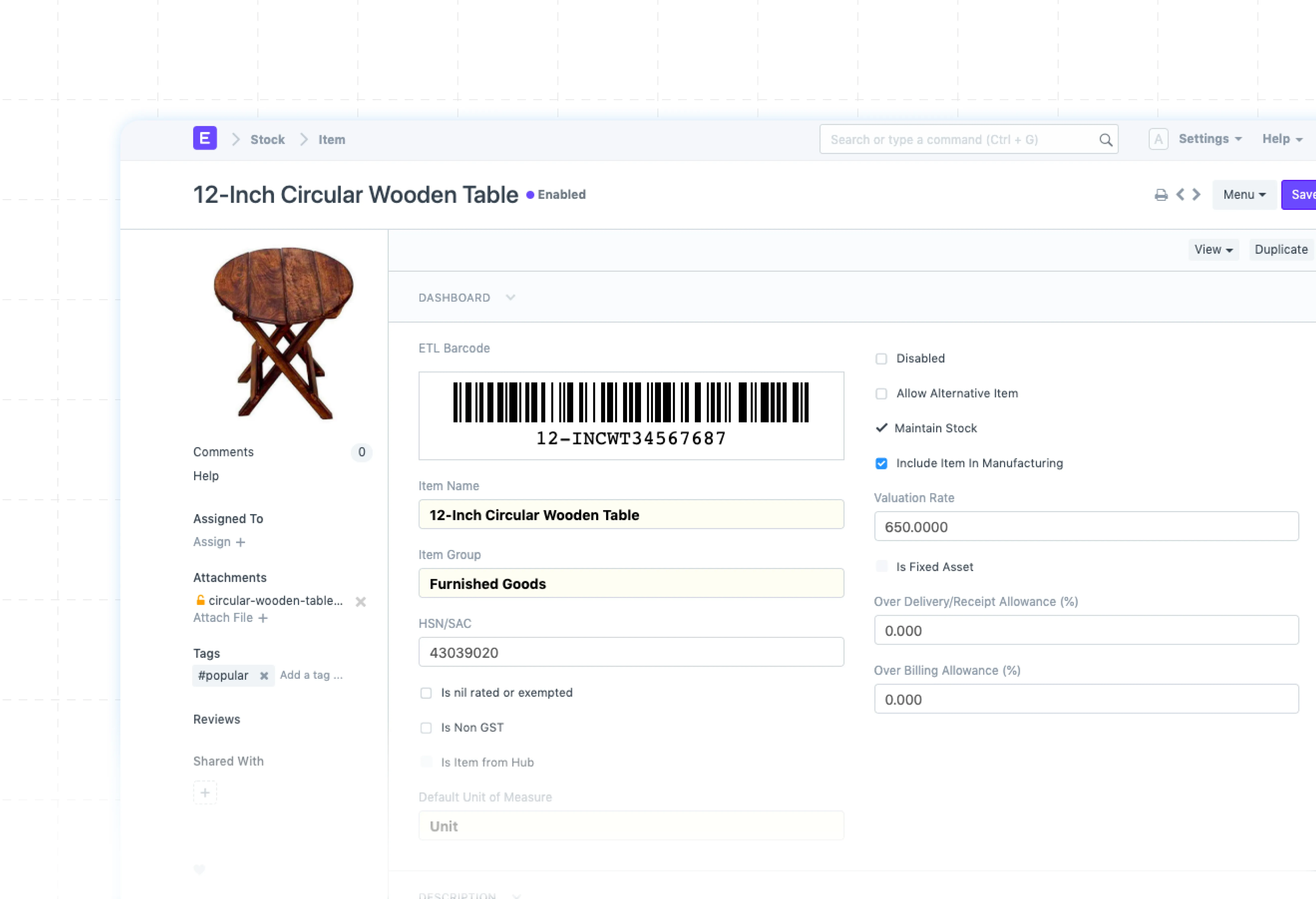 Speed up checkout and item tracking using ERPNext’s barcode management system.
