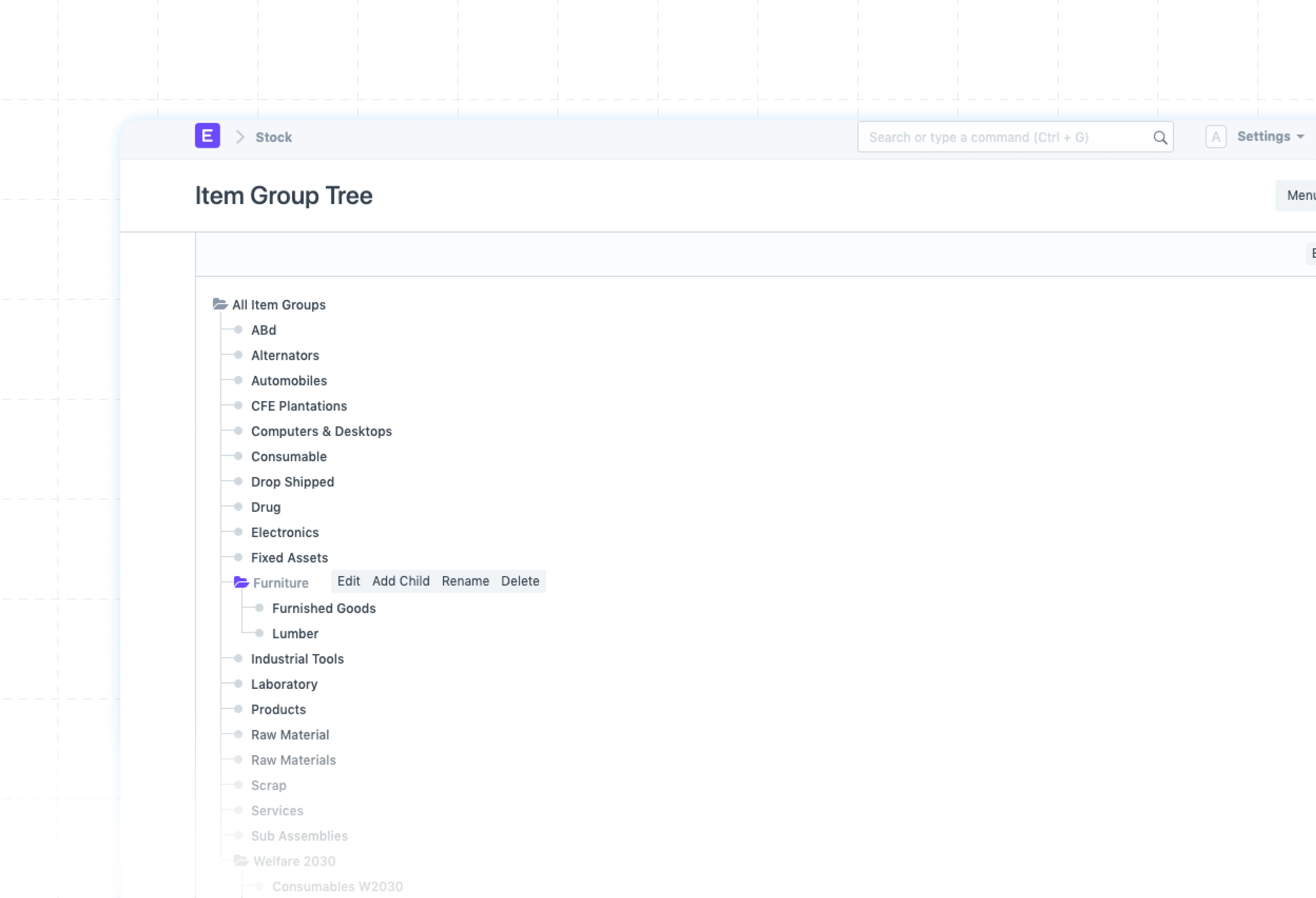 Easily organize and manage your supermarket products into structured categories using ERPNext.