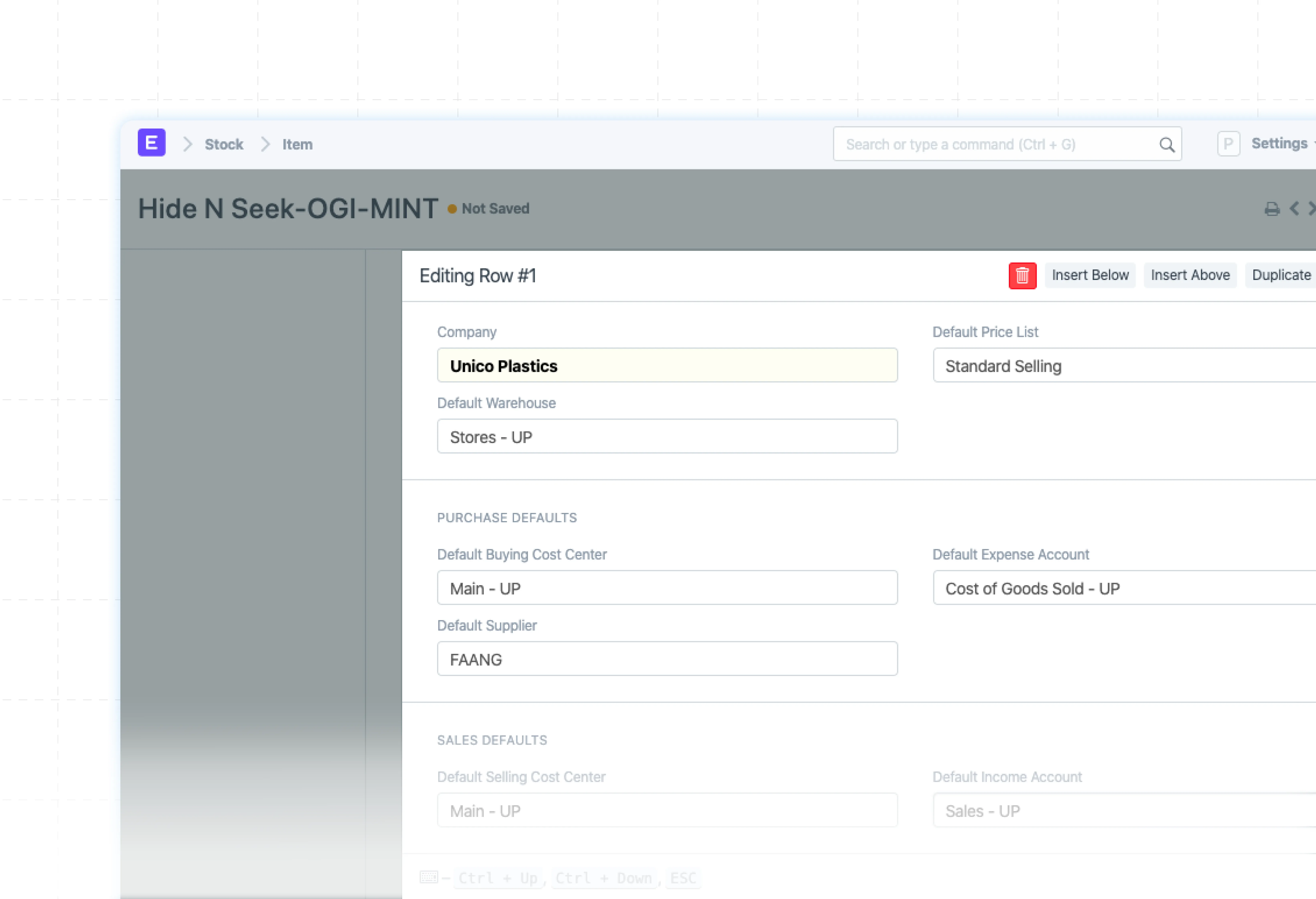 Speed up transactions by predefining key settings in ERPNext.