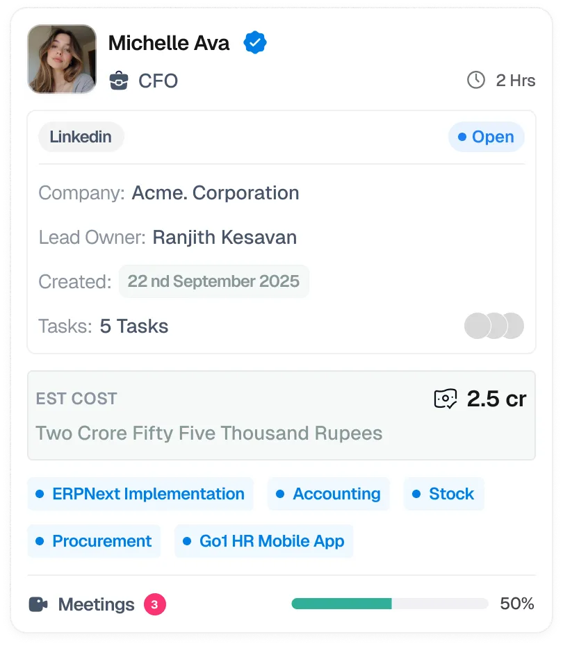 Clean, intuitive design that sales teams can start using instantly without complexity.