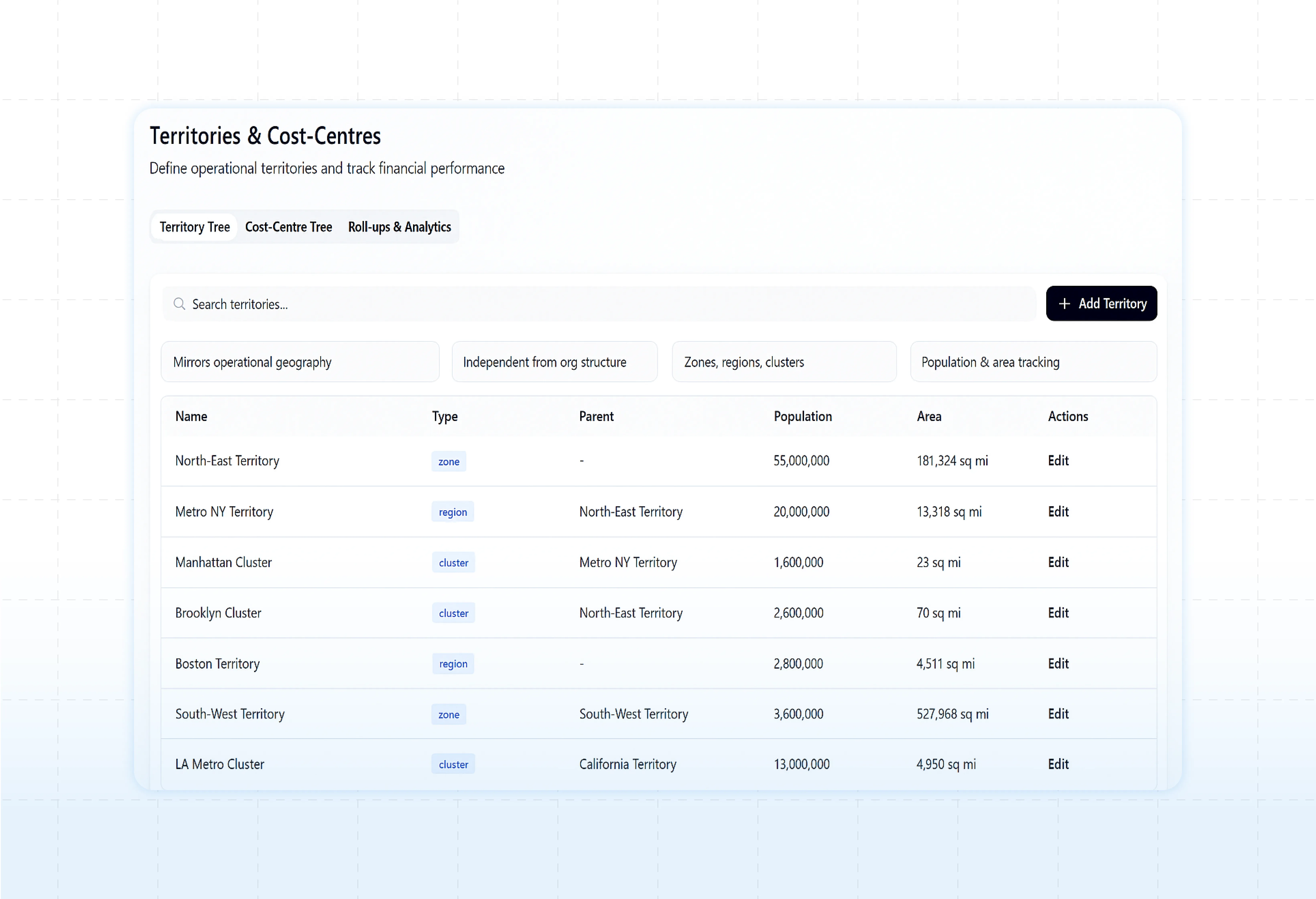 Territory & Cost Center Trees