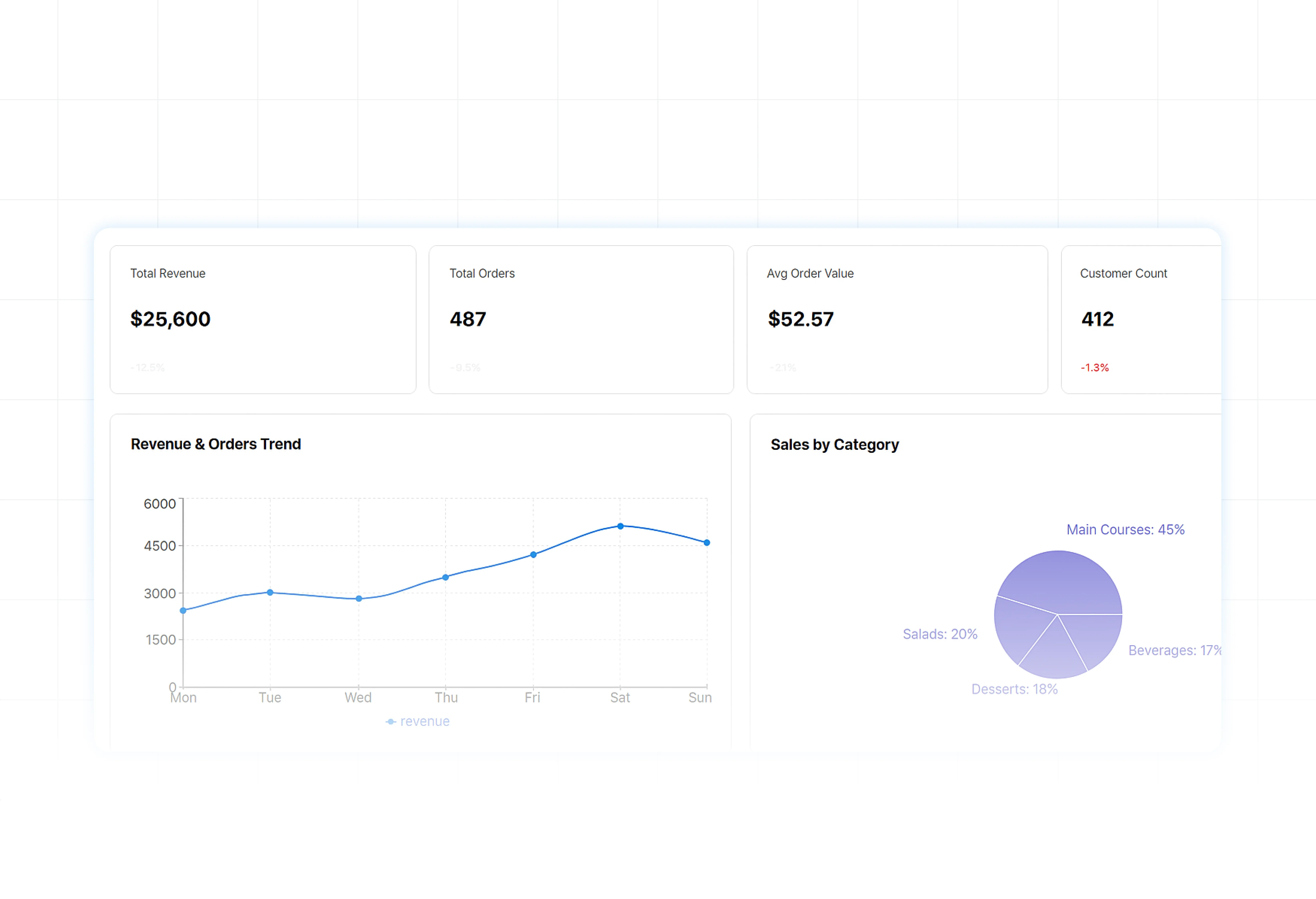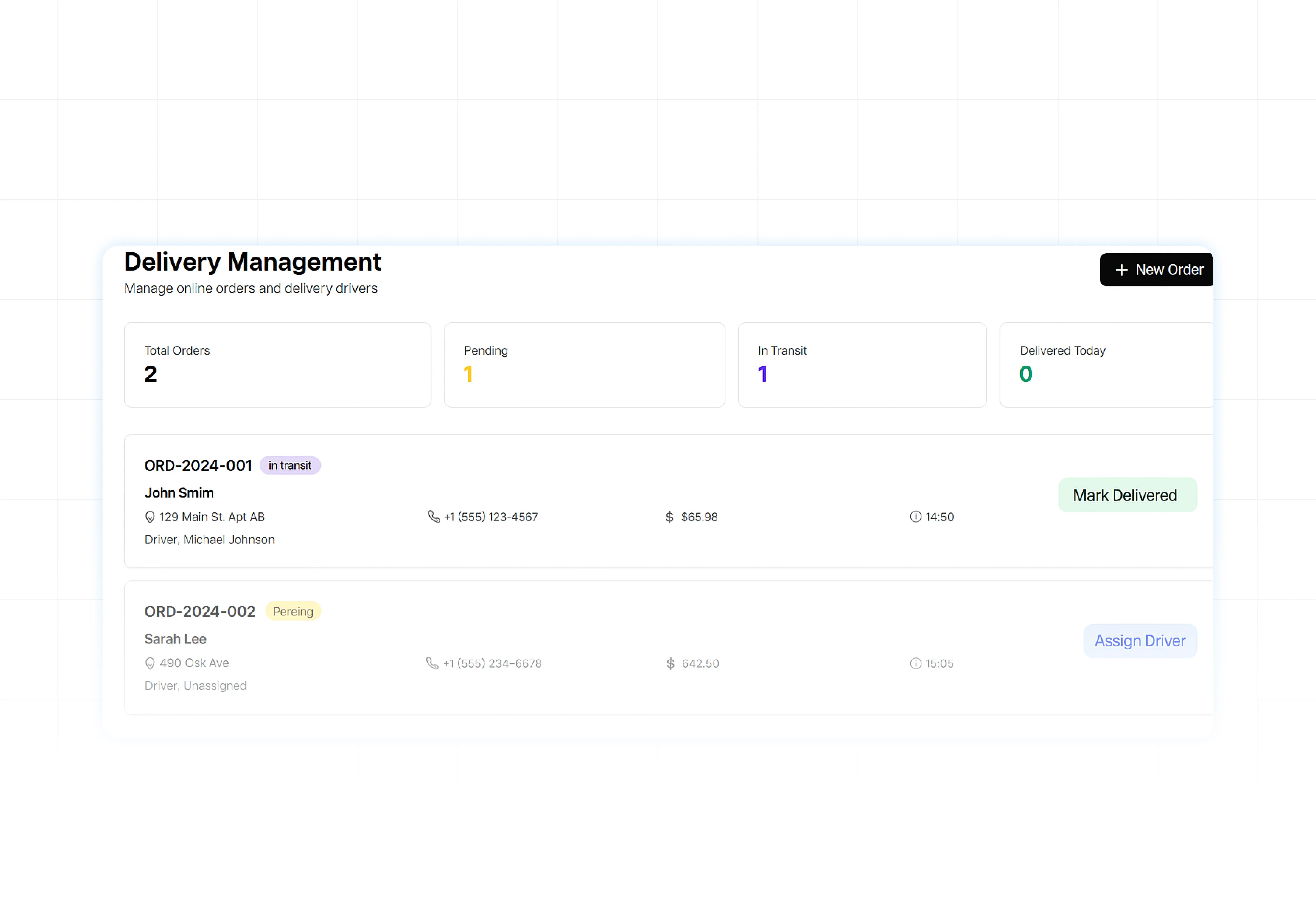 Connect with Swiggy, Zomato, and in-house delivery systems.