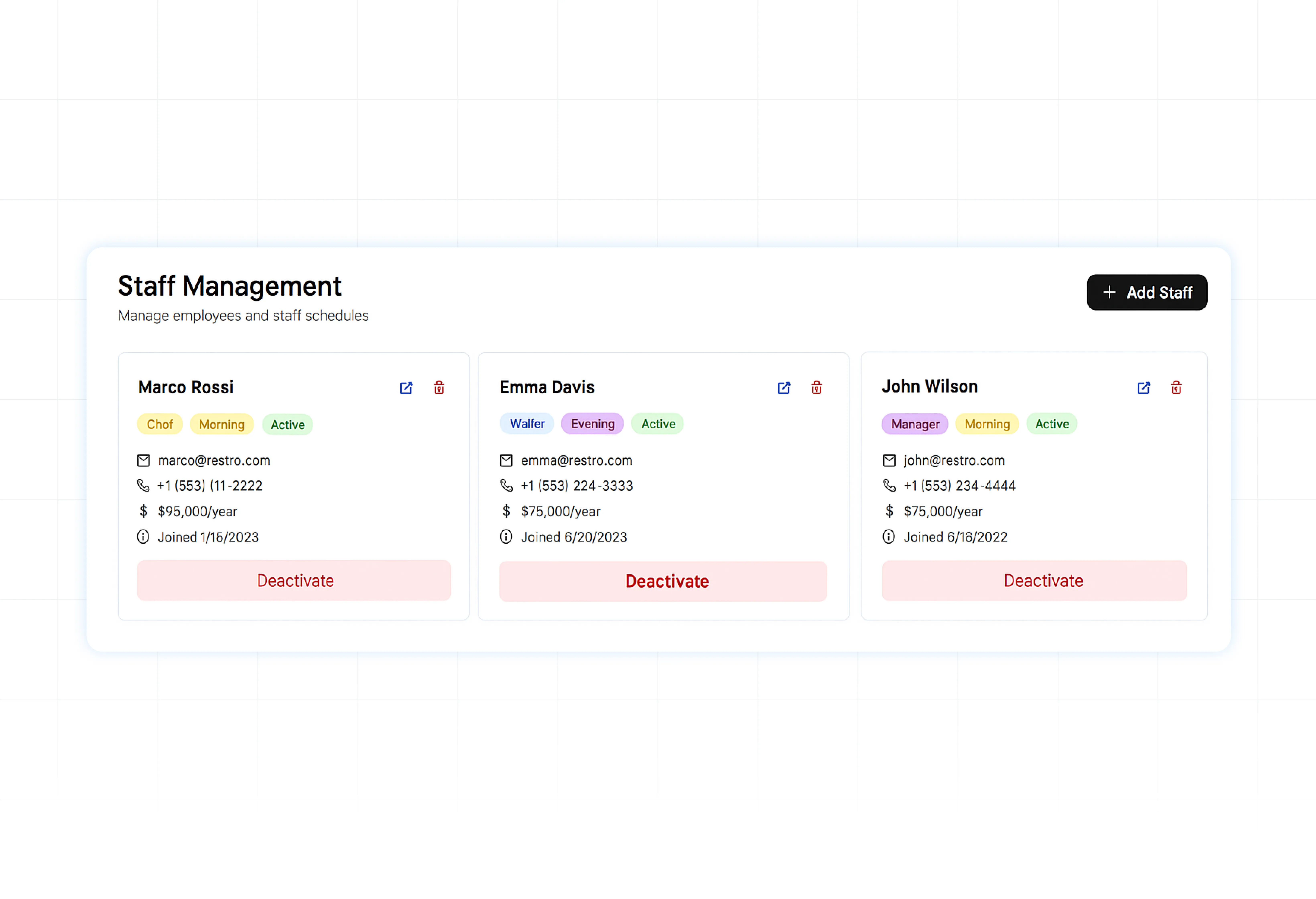 Yes, it includes role-based permissions, clock-in/clock-out tracking, and staff performance reporting.